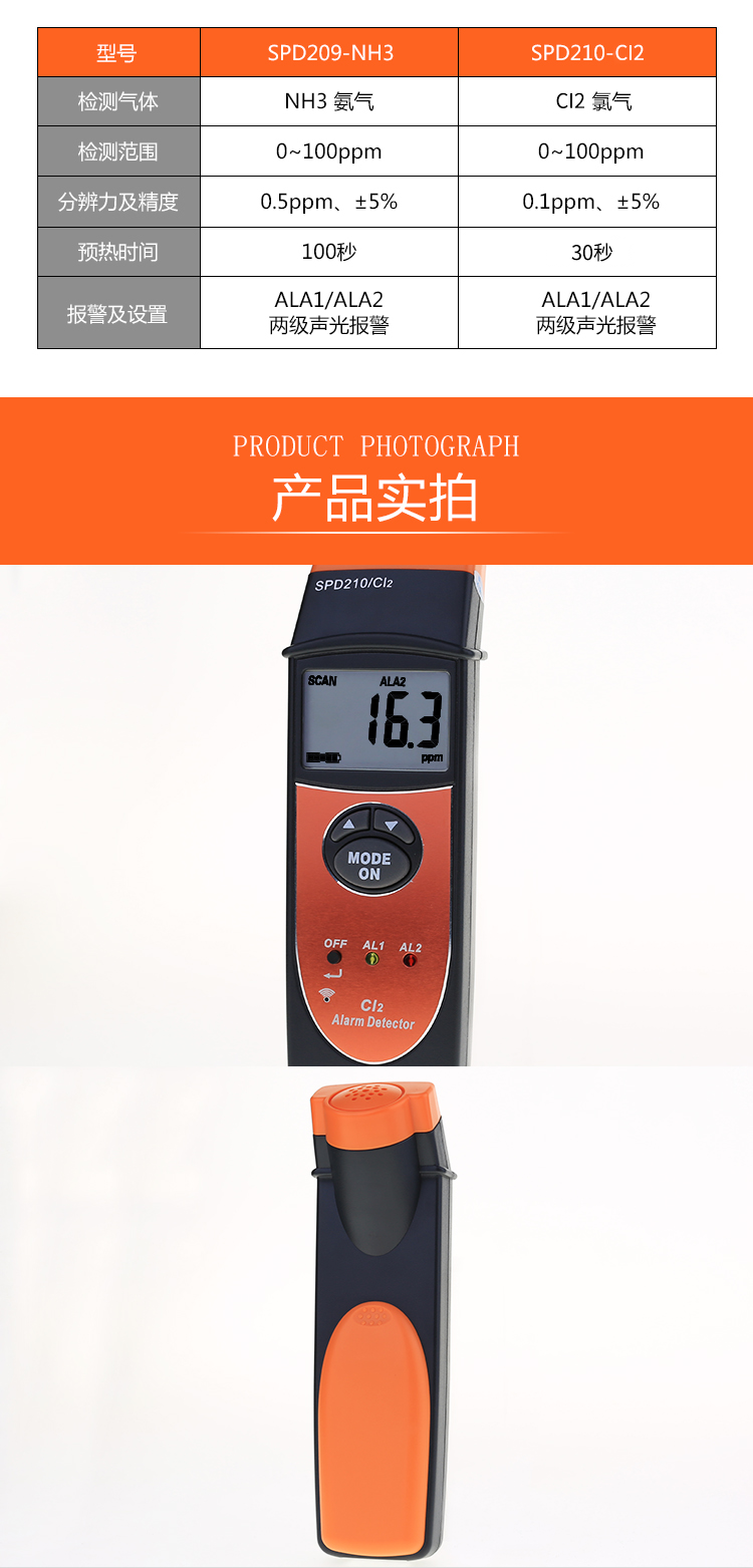 可在多种环境下,探测气体中氯气的含量(体积浓度ppm)。