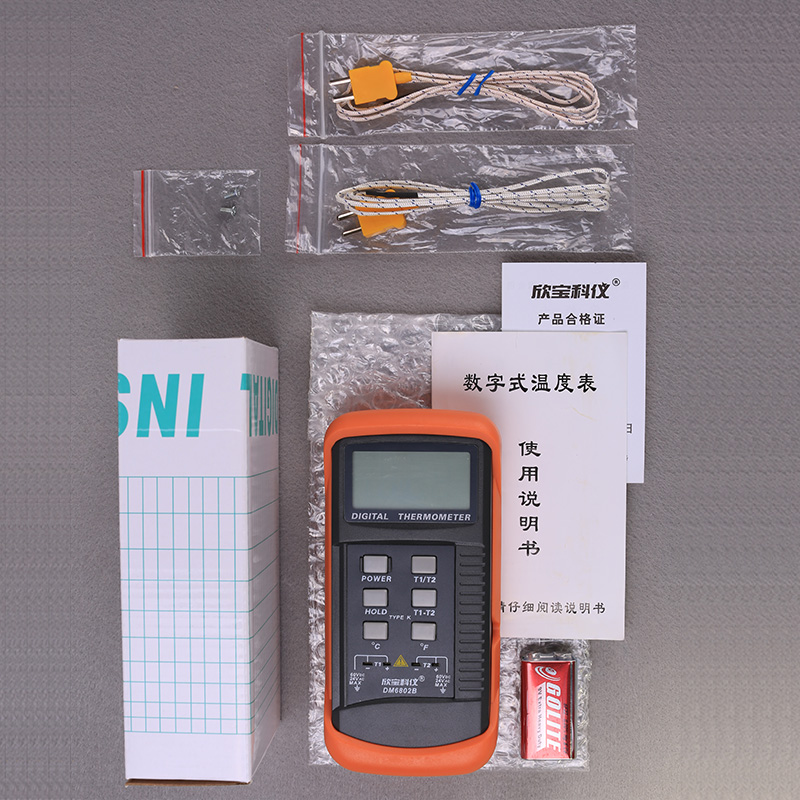 显示: 3 1/2 位LCD显示,字高15mm测量范围: -50℃~1300℃ -58℉~1999℉数据保持功能,华氏/摄氏度转换可分别测量T1通道、T2通道的温度值和T1-T2的温差值