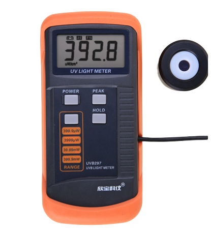显示: 3 3/4位液晶显示屏,最大读数3999. 测量范围:0-400 mW/cm2, 四档位测量;400μW档,4000μW档,40mW档,400mW档(1000 μW/cm2 = 1 mW/cm2) 传感器波长范围:275nm–325nm 探测器的光谱:峰值297nm,50%以上透过率波段285 nm到310 nm 准确度:±(8%FS + 2dgt),带外区杂光小于0.1% *在UVB光源下进行校准,并与标准UVB辐照计进行比较 *测试环境下的射频场强度小于3伏/米,频率低于30兆赫 传感器结构:紫外增强型光电二极管和UVB波段过滤校正镜 取样率:2次/秒 过载显示:显示‘OL’ 重量:350克(含电池) 操作温湿度:0℃ to 40℃(32℉-104℉) 0~80%Rh 电源:直流9V 6F22型电池 耗电量:直流约2.7毫安 尺寸:表身 160x78x43mm ,传感器 φ40x35mm |