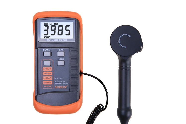 黑光辐照计探测器的光谱:370nm 到470nm(峰值420nm,50%以上透过率波段395 nm到450 nm)。