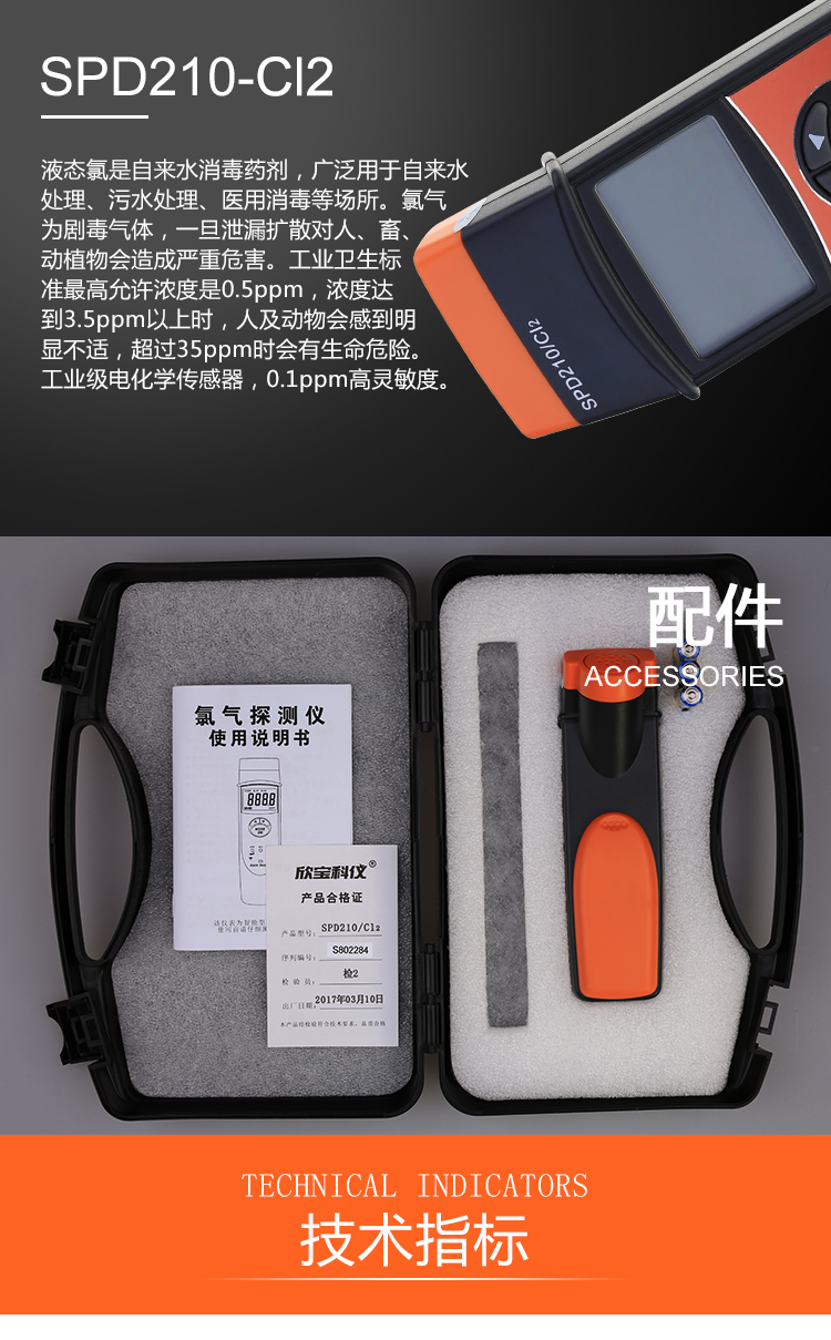 可在多种环境下,探测气体中氯气的含量(体积浓度ppm)。